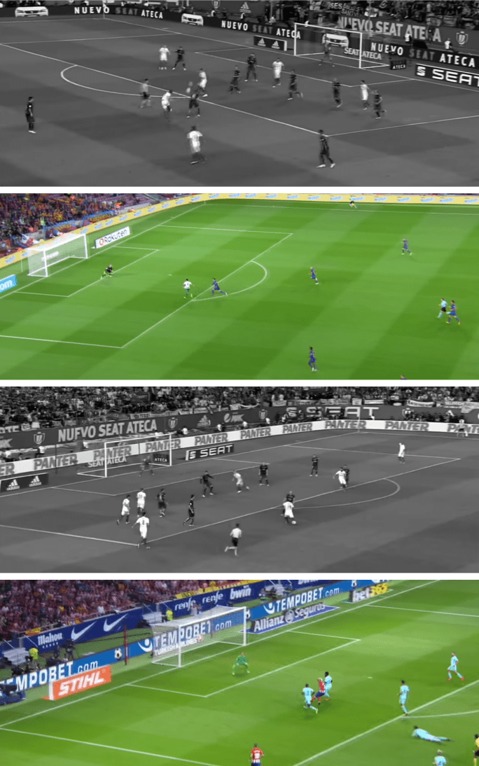 Como se ha señalado en el párrafo inicial, Ter Stegen siempre ha tenido unas condiciones privilegiadas para responder a una ocasión de gol rival. Rápido, ágil, explosivo, intuitivo y fugaz en la reacción, su zona de confort a la hora de atajar venía estando muy próxima a la línea de gol. Y en ella pareció refugiarse cuando más competido tuvo su lugar, pues, de hecho, en sus primeros años en Barcelona tendió más a ello que en sus últimos en Alemania (Imágenes). Con la referencia cercana de los tres palos y alargando así el recorrido de los disparos, encontraba un extra de tiempo en el que acomodar su escorzo. En este tipo de situación, los pasos del alemán estaban enfocados a la última respuesta. A la intervención inmediatamente previa al gol. A la solución de un problema en forma de ocasión en contra. A la parada sobre la línea.